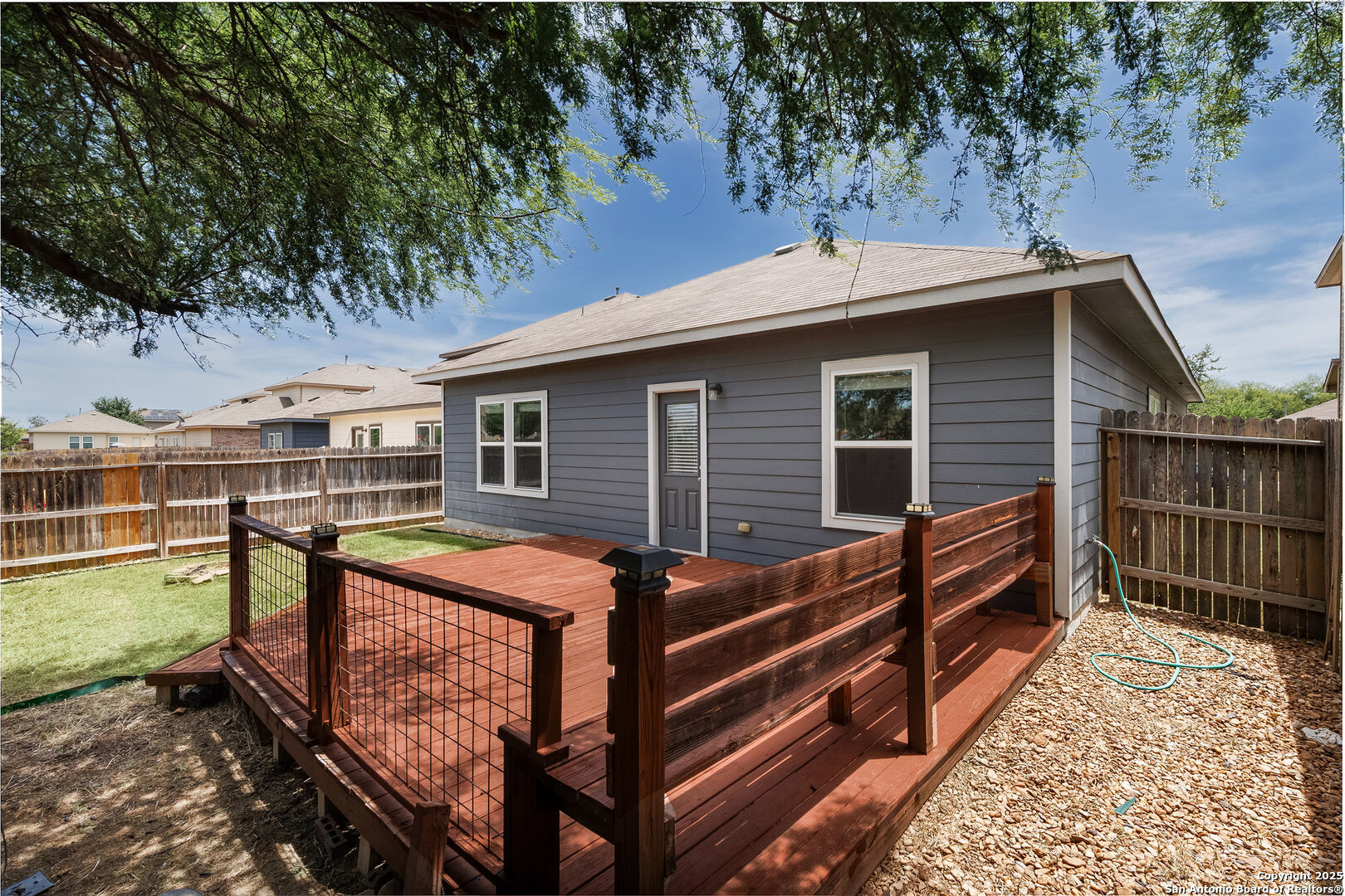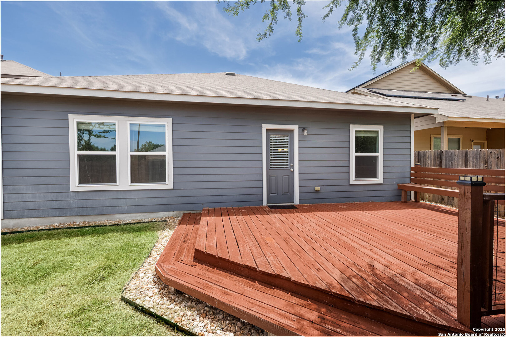 Discover this charming one-story, 4-bedroom home in the highly desirable Kriewald Place subdivision-just minutes from Lackland Air Force Base, Hwy 90, and Loop 410. Featuring a spacious open layout, private primary suite, and plenty of room for family, guests, or a home office-this home offers comfort and flexibility. It also comes equipped with solar panels, making it a highly energy-efficient choice that helps keep utility costs low. Step outside to a large backyard deck, perfect for relaxing, entertaining, or enjoying evening barbecues under the Texas sky. Located in a friendly neighborhood close to parks, schools, and shopping-this home truly checks all the boxes. Low bills, great location, and an outdoor space you'll love-schedule your showing today!
