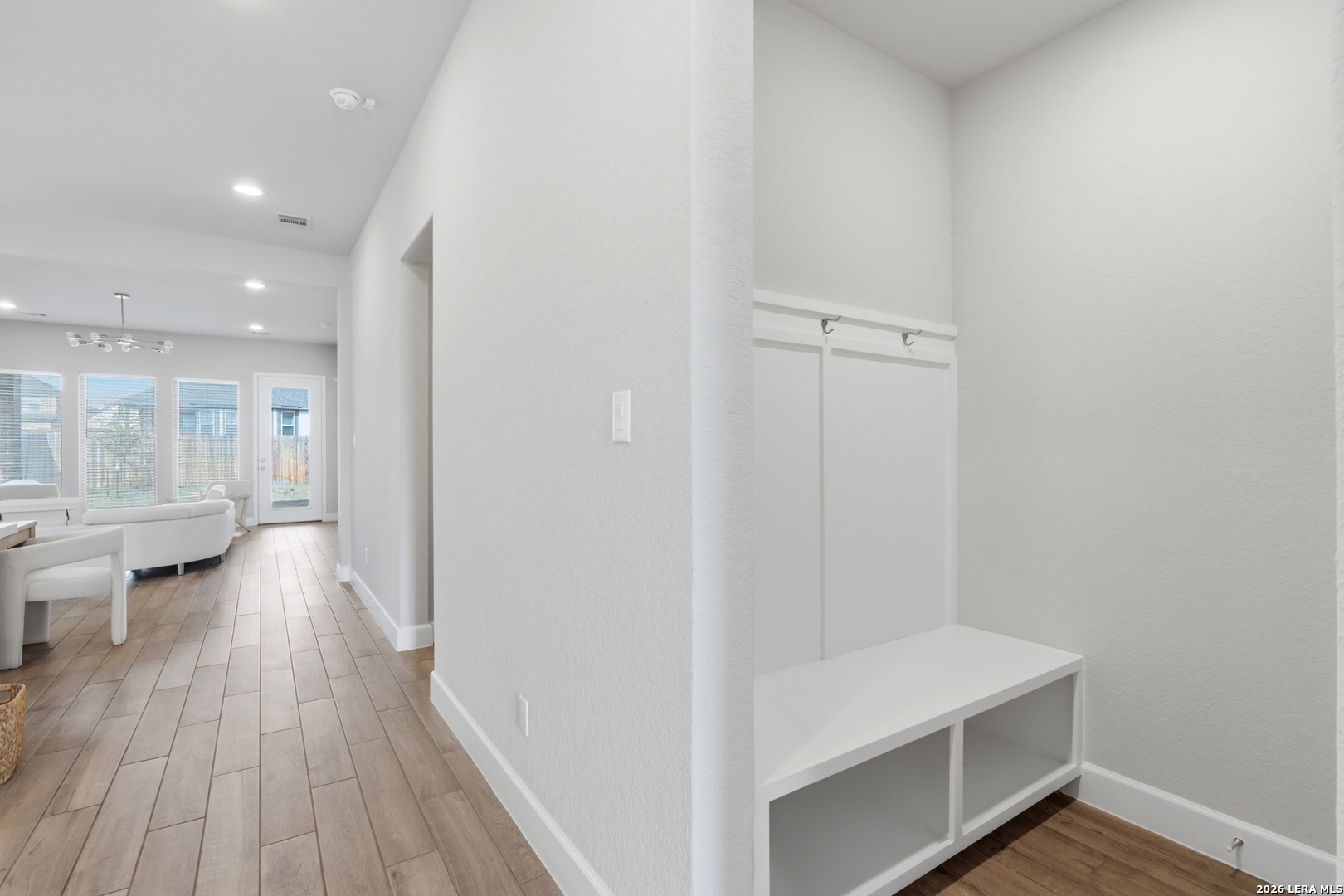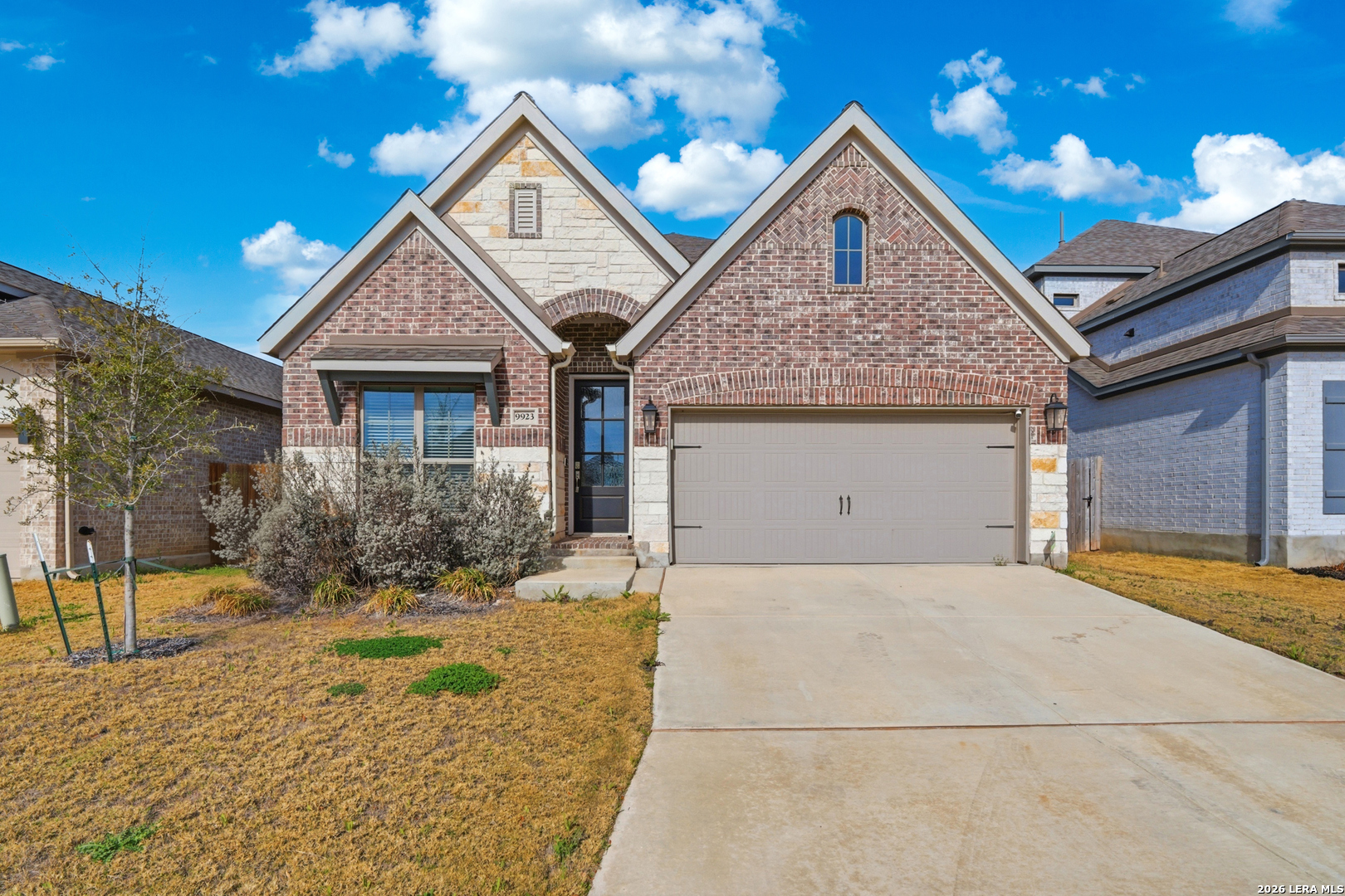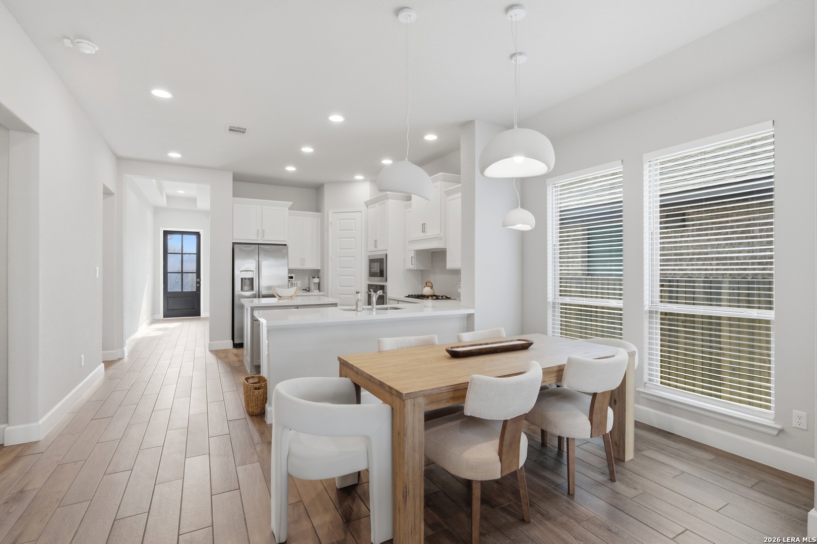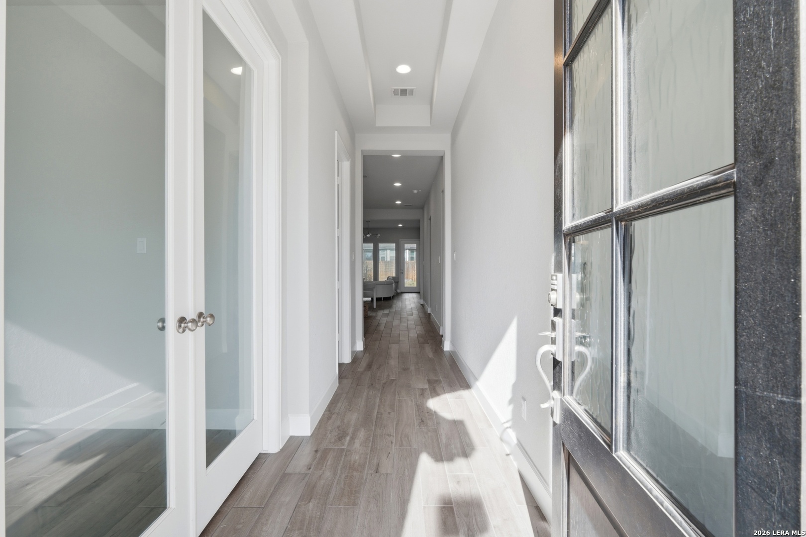 Welcome to this beautifully designed home offering both functionality and comfort. A private home office with French doors and an impressive 11-foot ceiling greets you at the entry-perfect for working from home or creating a quiet retreat. The open-concept kitchen features a large center island, corner walk-in pantry, and flows seamlessly into the dining area and spacious family room highlighted by a wall of windows that fills the space with natural light. The generous primary suite provides a relaxing escape, complete with dual vanities, a garden tub, separate glass-enclosed shower, and an oversized walk-in closet. Secondary bedrooms also include walk-in closets, offering ample storage throughout. Additional features include a convenient mud room located just off the two-car garage for added organization and everyday ease. This home combines thoughtful design with modern living-schedule your showing today!