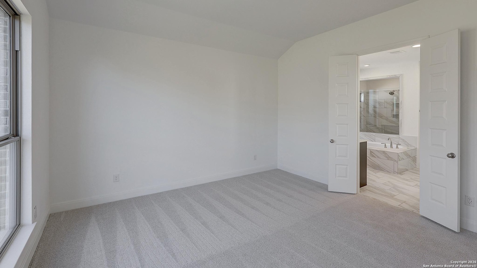 Extended entry with 12-foot ceiling leads to open kitchen, dining area and family room with 10-foot ceilings throughout. Kitchen features center island with built-in seating and a 5-burner gas cooktop. Family room features wall of windows. Primary suite with 10-foot ceiling and wall of windows. Dual vanities, garden tub, separate glass-enclosed shower and large walk-in closet in primary bath. A guest suite with private bath adds to this four-bedroom home. Covered backyard patio and 5-zone sprinkler system. Mud room off two-car garage.