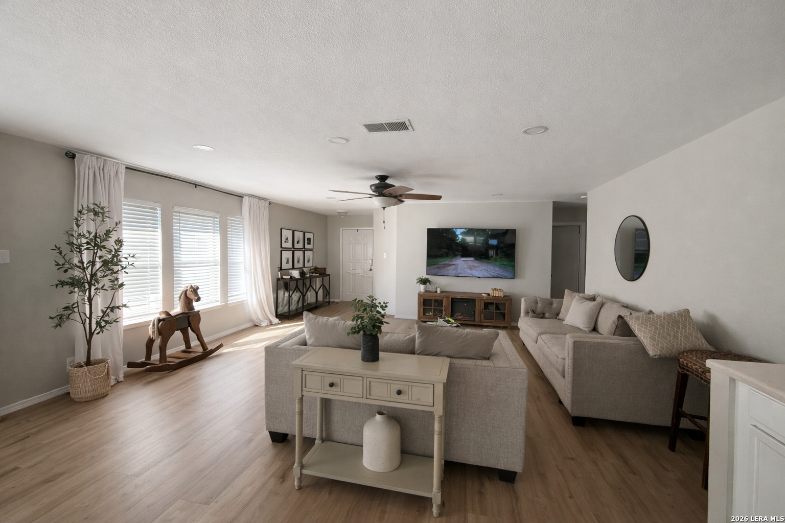 Step inside this 3 bedroom, 2 bathroom home and feel the warmth of natural light filling every corner. The open living and dining areas flow seamlessly, highlighted by new luxury plank vinyl flooring and modern recessed can lighting, creating a bright, inviting space for everyday life and entertaining. The kitchen is open while cooking or hosting. French doors lead to a large backyard with no back neighbors, offering privacy and a greenbelt view, perfect for morning coffee, and relaxing evenings. Down the hall, three sun-filled bedrooms and two bathrooms provide comfort and organization. A brand-new AC system installed in 2025 ensures year-round comfort. Ideally located near Braun and Bandera with quick access to Loop 1604, this home is minutes from The Shops at La Cantera, Little Woodrow's, Starbucks, Six Flags Fiesta Texas, and the charming community of Helotes. With thoughtful updates, natural light, and a private backyard with no rear neighbors, this home is ready for your next chapter. Step inside and imagine life here, comfortable and in close proximity to entertainment and dining.