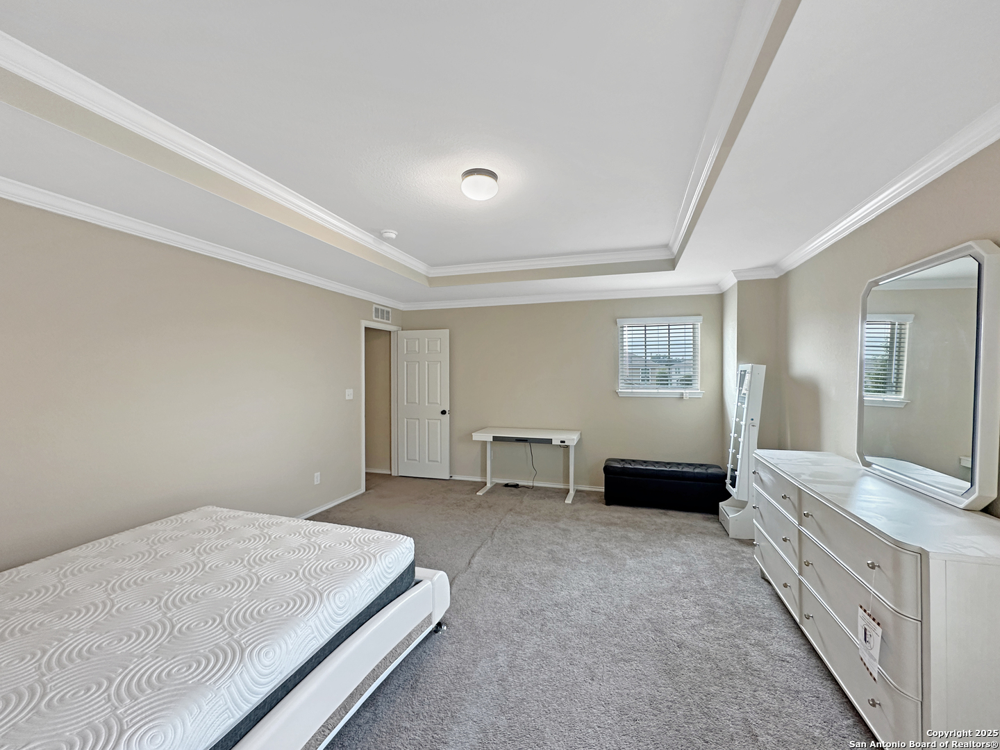 Welcome to 9946 Cowboy Lane, a beautiful Pulte-built home featuring over 2,600 SF, 4 bedrooms, 3 full bathrooms, a game room, a main floor office/study, as well as a main floor guest bedroom. Located in Davis Ranch (community pool, park/playground) and close to shopping, dining, and schools, this spacious home offers nice curb appeal and is immaculate inside and out with just having one owner since it was built. The exterior is a combination of light brick, stone and hard-siding. The main floor features the study, a large dining room that is connected to the family room, as well as the kitchen and guest bedroom and a full bathroom. The primary bedroom has a coffered ceiling and is very large with plenty of room for an additional workspace or exercise area, while the primary bathroom offers a 5 piece bath with a double vanity, a walk-in shower and separate bathtub. The kitchen features granite countertops, plenty of cabinet space, a large island and connects seamlessly to the adjoining family room. The family room and dining room also offer crown molding, while the large ceiling fan in the family room is a great feature. The fenced yard is plenty large enough, yet no so large to maintain. Tile flooring is throughout the main floor except in the guest bedroom. The laundry room is conveniently located on the second floor as it is close to the three upstairs bedrooms. Priced below the county's assessed value makes 9946 Cowboy Lane an attractive and appealing home!