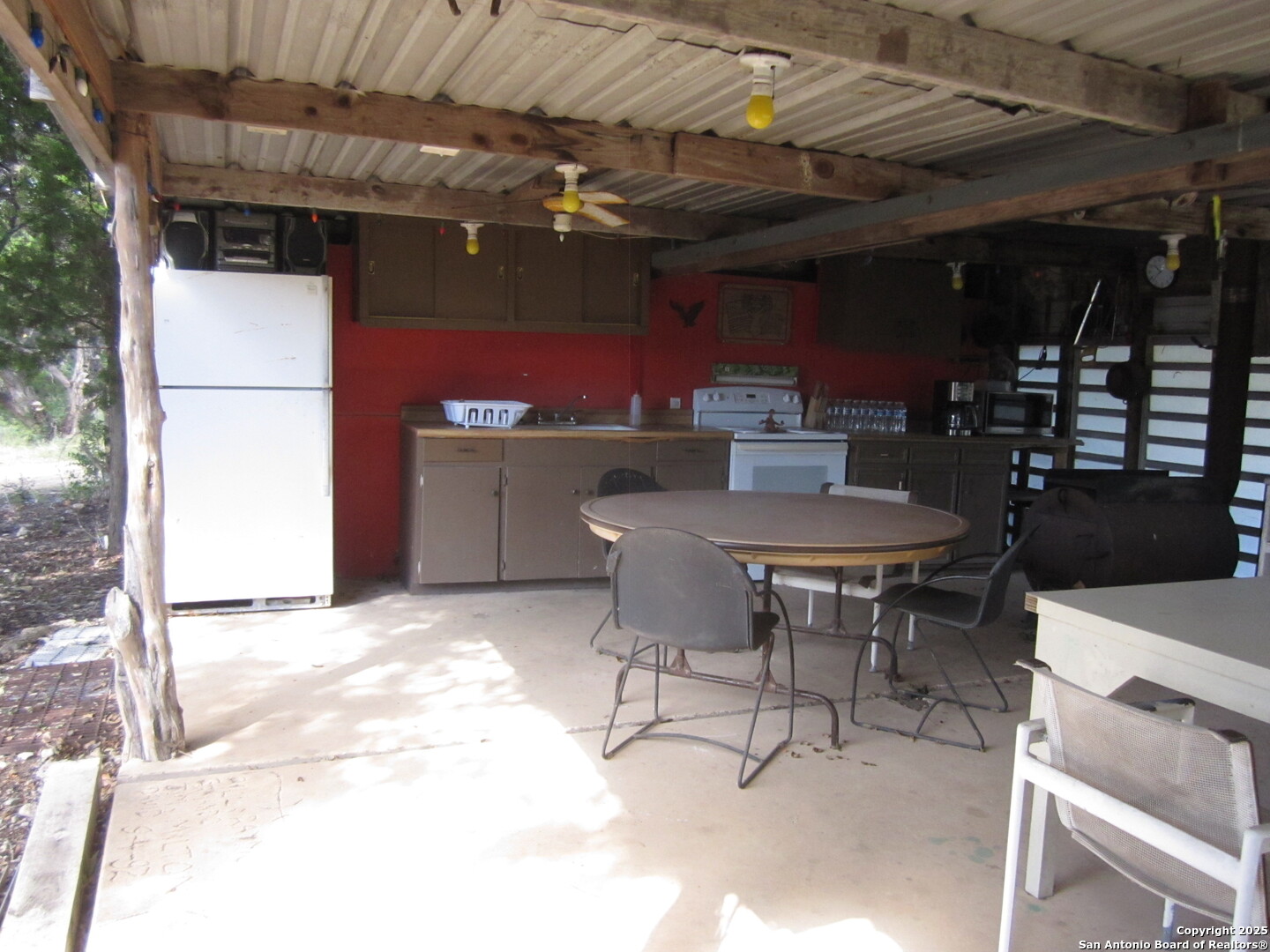 Welcome to a truly one-of-a-kind 377.58-acre ranch nestled in the heart of the Texas Hill Country, just 13 miles from Bandera, TX - the "Cowboy Capital of the World." This extraordinary property borders the Hill Country State Natural Area, offering direct access to thousands of acres of protected land, scenic vistas, and endless recreational opportunities. Natural Beauty and Water Features: The ranch is blessed with West Verde Creek, a live water creek that runs and winds through the property with crystal-clear pools, limestone outcroppings, and shaded banks. Multiple natural springs feed into the creek, enhancing water flow and supporting diverse native wildlife and vegetation. Residences and Improvements: Main Home: A 1,920 sq ft residence constructed of metal and native limestone, blending durability with rustic charm. Designed for low maintenance and energy efficiency, this home offers expansive views and modern comfort. Double-Wide Home: A spacious 2,432 sq ft home that serves perfectly as a guest house or secondary residence. Hunting Cabins: 4 rustic yet comfortable hunting cabins, ideal for hunters. Metal Workshop: An 1,800 sq ft metal shop, fully equipped for ranch operations, vehicle storage, or hobby work. Ranch Features Adding to the ranch's natural allure is a mapped cave system, first surveyed on March 11, 1967. This cave offers a fascinating glimpse into the area's geological history, with unique rock formations, cool subterranean chambers, and potential for further exploration. Whether you're a spelunking enthusiast or simply enjoy the mystery of natural wonders, this is a rare feature that sets the property apart. The cave contributes to the ranch's rich blend of science, history, and rugged Texas charm. Excellent perimeter fencing and cross-fencing, ideal for running cattle or livestock. Varied topography with open meadows, wooded areas, creek bottoms, and elevated viewpoints. Abundant wildlife, including whitetail deer, turkey, hogs, and other native species - perfect for hunting or wildlife observation. Location Just 13 miles to Bandera, with its historic charm, shopping, dining, and rodeos. Adjacent to the Hill Country State Natural Area, providing unmatched privacy, protected borders, and access to miles of hiking and riding trails. Approx. 1.5 hours to San Antonio, TX.