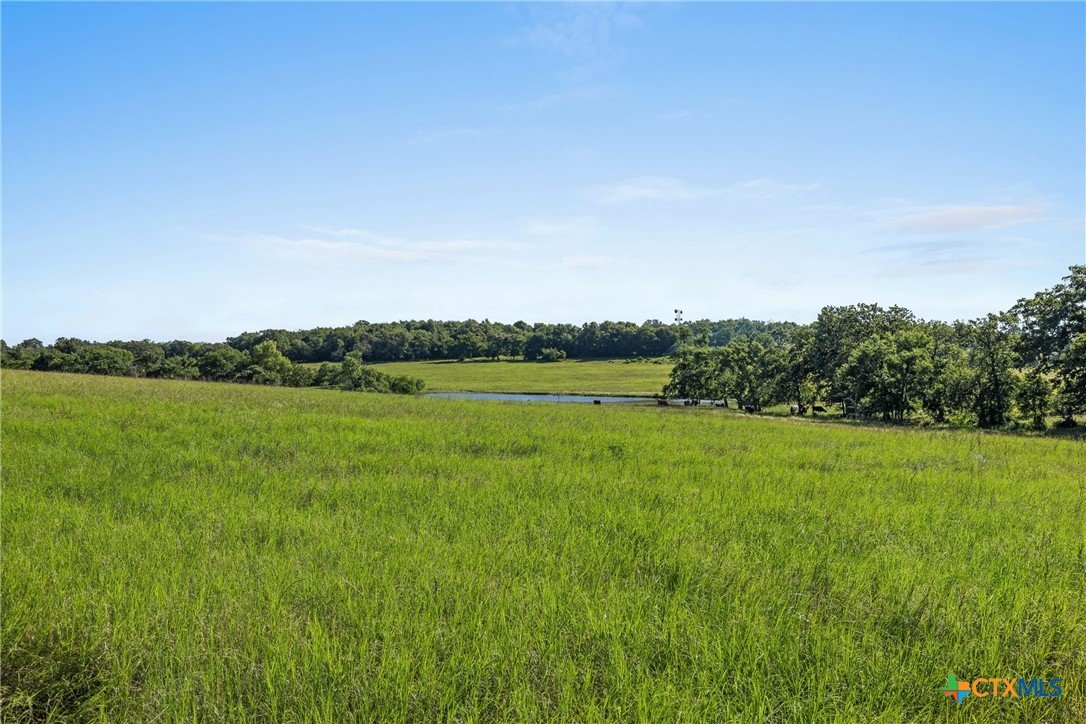 The 165-acre ag-exempt property showcases over 50 feet of elevation change, providing sweeping panoramic views across the countryside. Approximately 50% of the acreage is open pasture, primarily planted in Coastal Bermuda, while the other half consists of native hardwood forest dominated by mature oaks. This combination provides excellent grazing potential as well as ideal cover for wildlife. Water features are a highlight, with two ponds on the property: a 2-acre stocked pond teeming with largemouth bass and perch, and a secondary 0.5-acre pond, both of which are known to retain water year-round. Additionally, a tributary of Pond Creek runs north to south through the property, contributing to the water supply. Crossroads Ranch is equipped with two certified water wells. One well is operated by a traditional windmill, while the second is powered by electricity.
