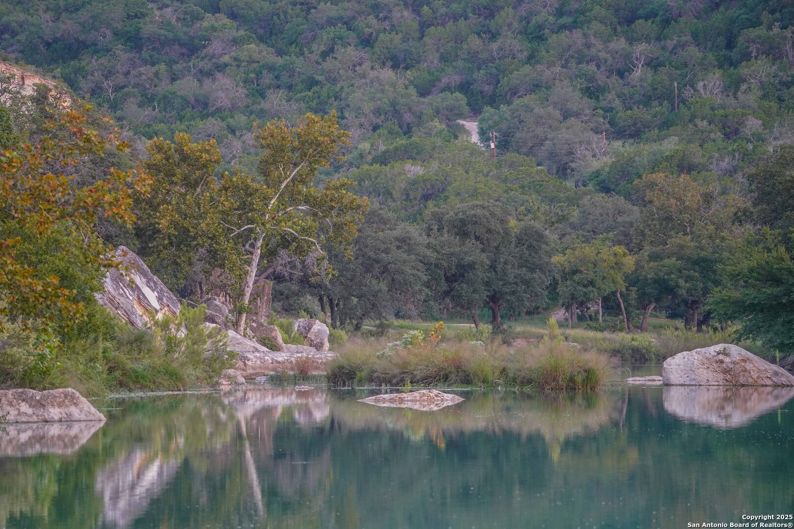 Boulder Creek Ranch encompasses 309 acres in the heart of Kimble County, offering live water, dramatic terrain, and a main ranch house set high above the Johnson Fork. Located about 10 miles southeast of Junction and only a mile off Interstate 10, the ranch provides both accessibility and privacy, with the outer rim of San Antonio just over an hour away. The property is anchored by more than 2,500 feet of frontage along the Johnson Fork Creek. This stretch of water is recognized for its deep blue color and clarity, reaching depths of 10 feet and spanning more than 100 feet across in places. Limestone and chalk bluffs rise over 200 feet above the creek, creating a dramatic contrast between the bright river valley and the rugged high country above. The water supports year-round recreation, from swimming and kayaking to fishing and simply enjoying shaded areas along the banks. The terrain climbs quickly away from the creek, breaking into canyons, ridges, and rolling uplands that connect into the Blue Mountains. From the higher elevations, long views stretch for miles across the Hill Country, capturing both sunrise and sunset. The land possesses great native habitat for thriving wildlife, with whitetail, axis, and turkey calling the ranch home. The main home sits atop one of the ranch's most prominent ridgelines, a 3,000 square foot residence with four bedrooms and two and a half bathrooms. Warm wood finishes, vaulted ceilings, and an open layout create a welcoming interior. The upstairs bedrooms overlook the great room below, and the wide porch frames views of the Johnson Fork and the valley directly beneath. A detached two-car garage and a two-car carport enclosed on three sides provide covered parking and storage. A 591 square foot river cabin offers additional lodging near the water, with one bedroom, one bathroom, and a covered porch. This cabin serves well as a guest house or as a hunter's cabin for extended stays. Two water wells supply the property, supporting household and ranch use. A network of internal roads extends throughout the property, with the main road paved all the way to the hilltop residence and additional trails providing access to the creek, canyons, and elevated vantage points. Boulder Creek Ranch reflects the best of the region's character: clear live water, towering bluffs, and wide-open views across the Hill Country. Its combination of improvements, live water frontage, and size make it well suited for recreation, hunting, or a long-term residence within easy reach of Junction, San Antonio, and Kerrville.
